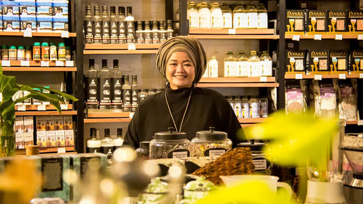 Helianti Hilman pictured inside of her Javara foodstuff retailer in Indonesia.